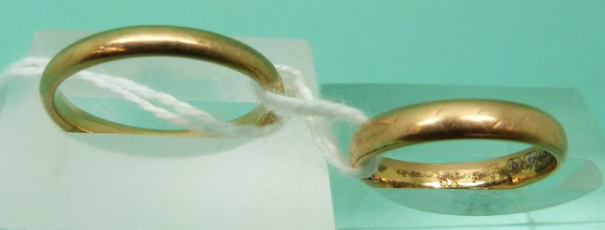 A 9ct gold wedding band (2.2g) and an 18ct gold wedding band (2.2g)