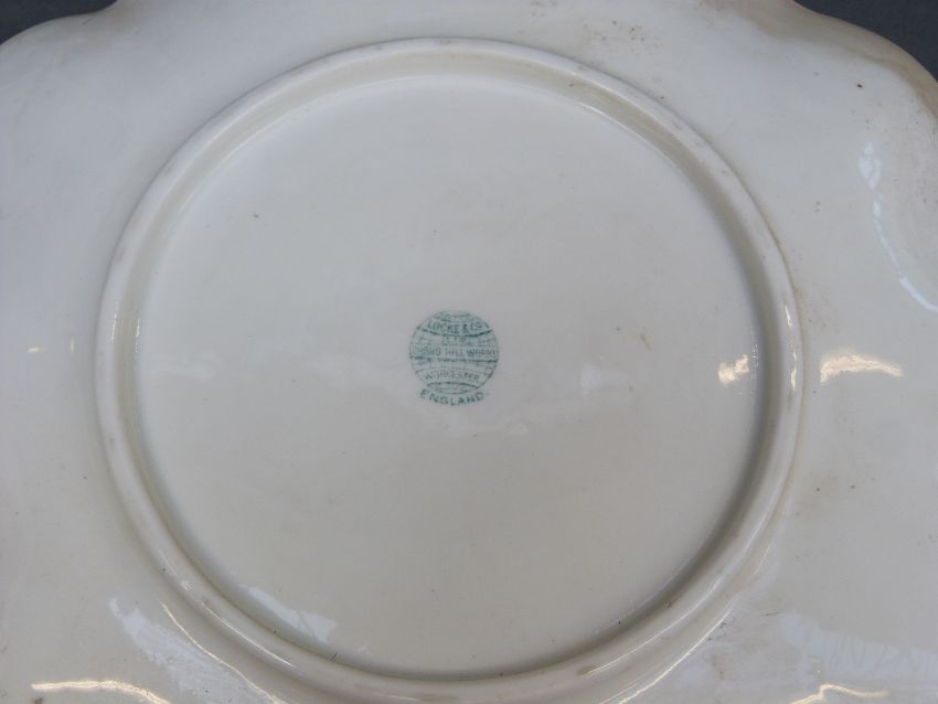 Locke & Co Worcester blush ivory cabinet plate decorated with a peacock signed H Wall, diameter 24cm