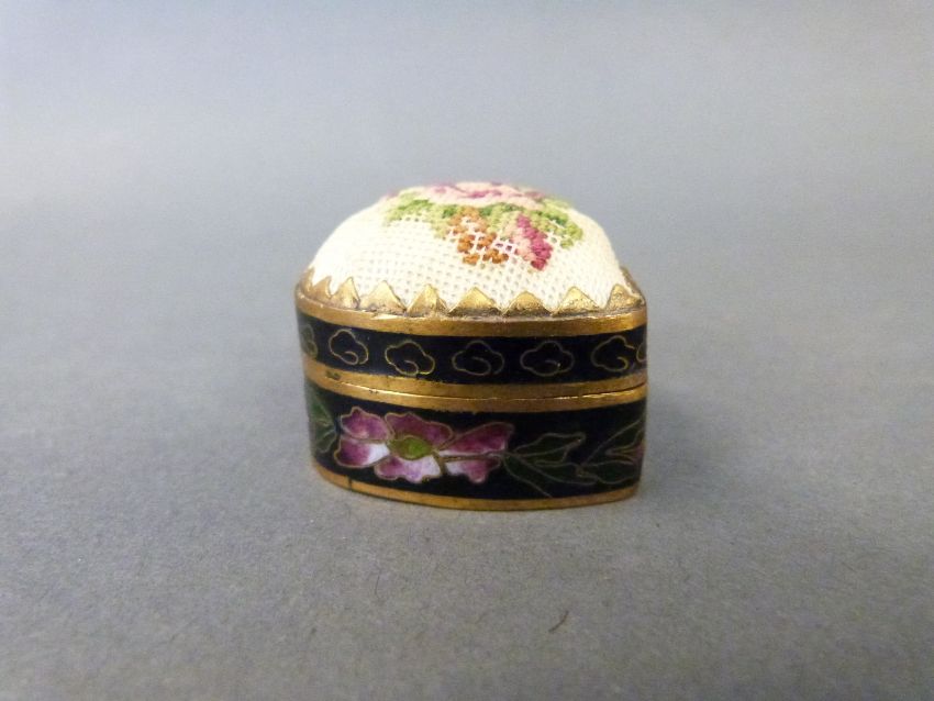 A Must de Cartier gold plated lighter and a cloisonne enamel heart shaped pin cushion