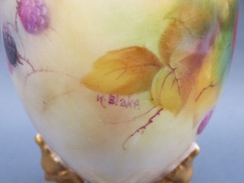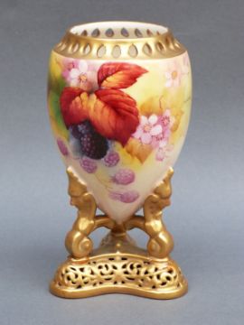 Royal Worcester footed vase with bramble decoration by Kitty Blake, 15.5cm tall