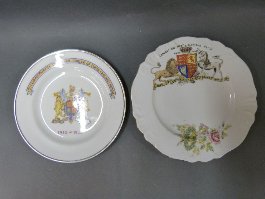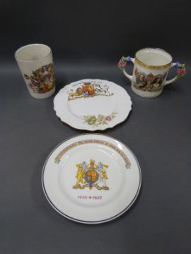 Paragon commemorative tyg for 1910-1935 silver jubilee with plate, Foley Victoria plate and a beaker