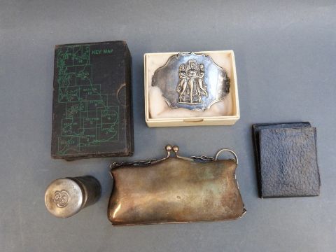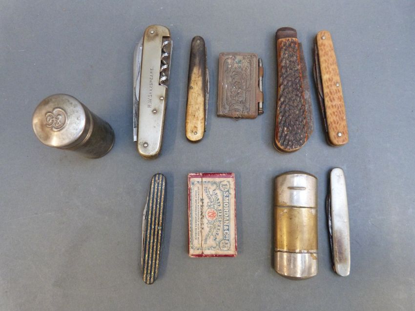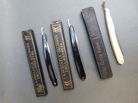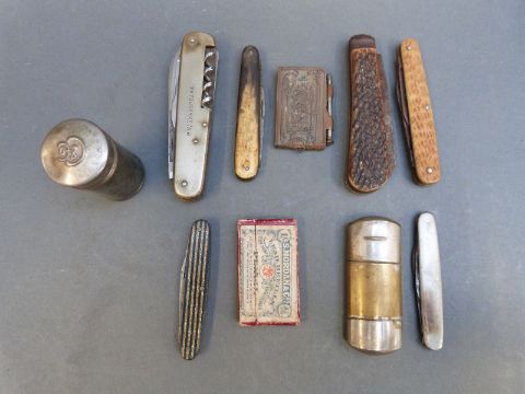A collection of razors, knives, silver plated items, cyclists' pocket maps etc