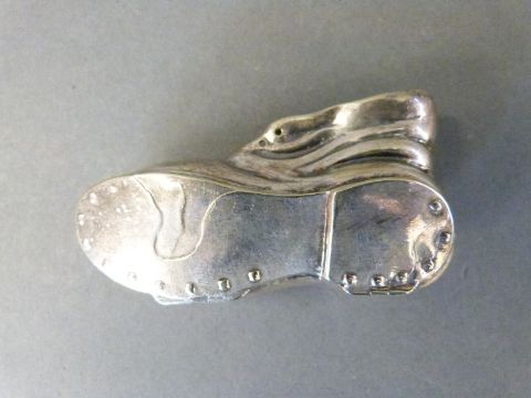 A silver plated old boot vesta, length 6.5cm