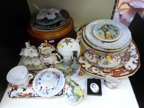 A quantity of collectable ceramics to include Masons, Bradford Exchange, Royal Doulton, Royal Worcester, Aynsley, Paragon moon landing etc