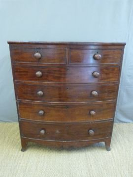 A 19thC mahogany bow fronted chest of two over four graduated drawers (W106 x D56 x H120.5cm)