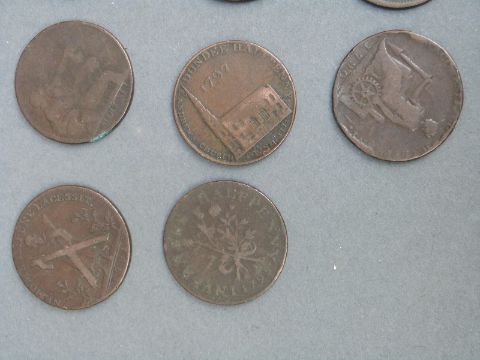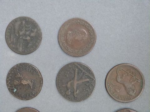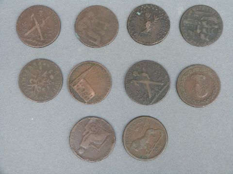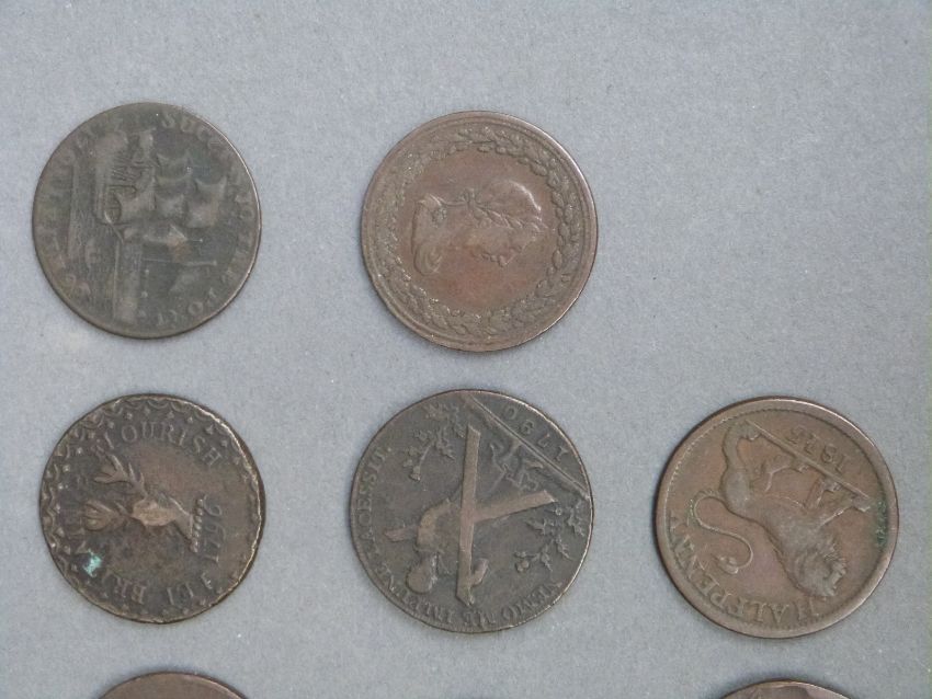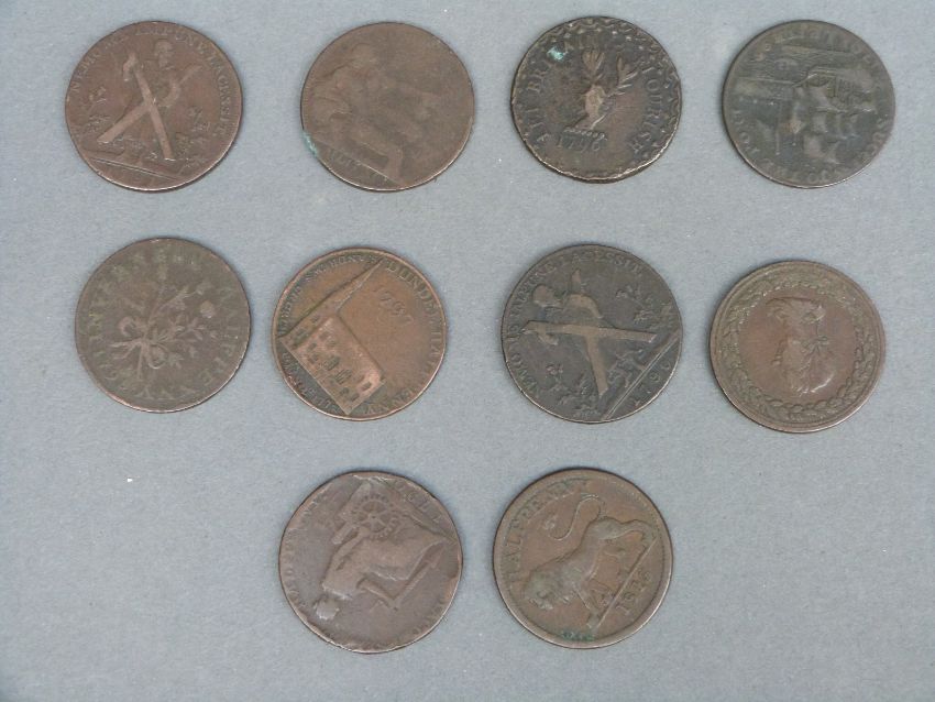 Six large 18thC various Scottish Conder halfpenny tokens, together with four further examples including Macclesfield