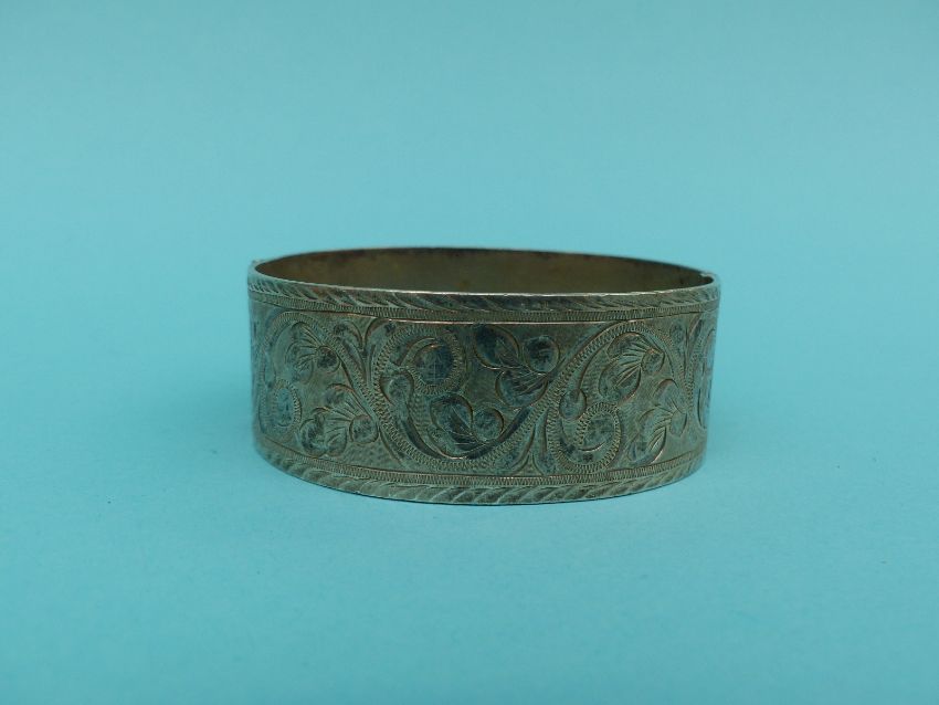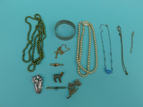 A collection of jewellery to include a yellow metal brooch marked 10k, brooches, hallmarked silver bangle, 9ct gold cross etc