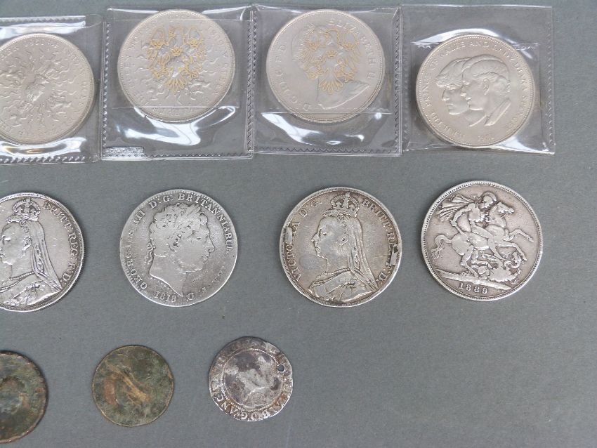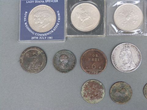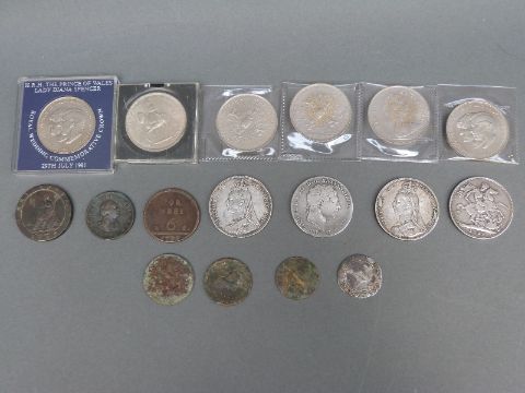 Elizabeth I sixpence, cartwheel penny, modern crowns etc