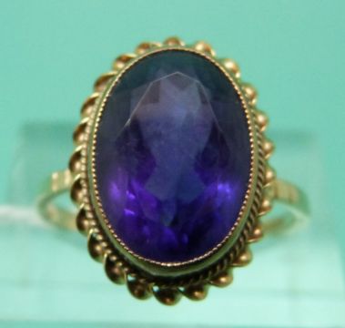 A 9ct gold ring set with an oval cut amethyst (size P)