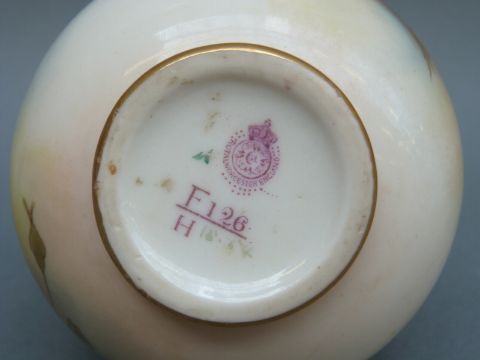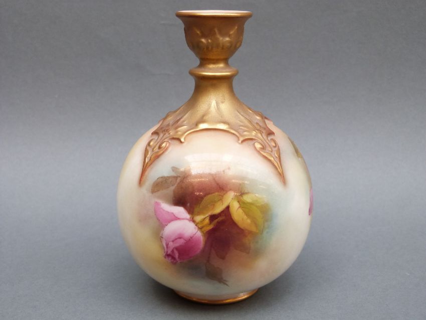 Royal Worcester globular vase decorated with roses, shape FH126, 13cm tall