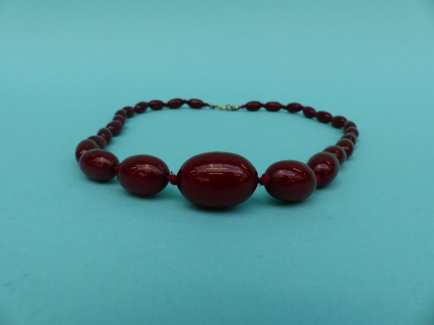A cherry amber necklace of graduated oval beads, 25g