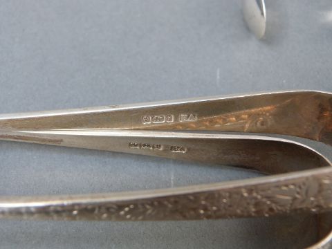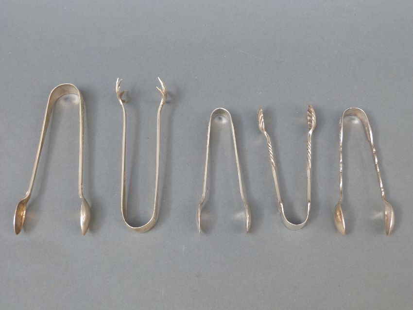 Five various sets of Victorian and later hallmarked silver sugar nips or tongs, various dates from 1893 onwards, weight 156g