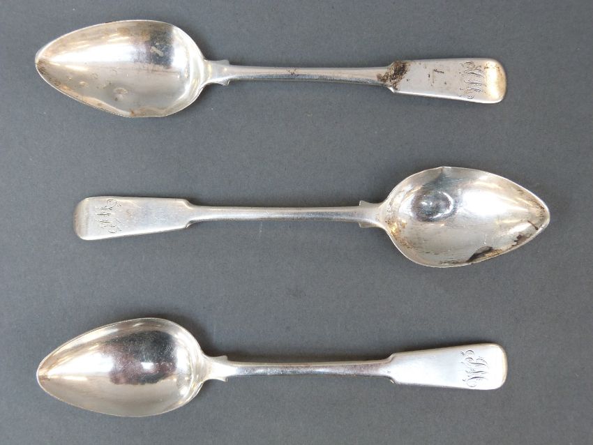 Three 19thC Scottish provincial Perth silver teaspoons, stamped with town mark and maker's mark RK twice, weight 51g