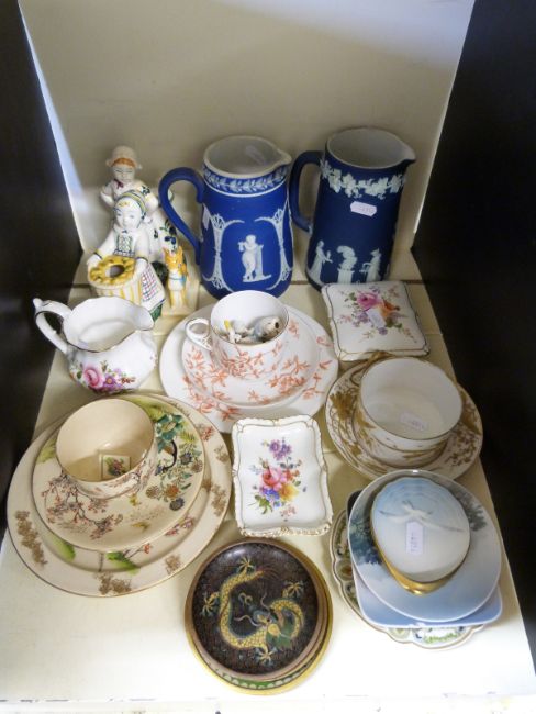 Royal Crown Derby ceramics, continental and Japanese cabinet cups and saucers, Copenhagen, Carltonware, Wade, Wedgwood Jasperware etc