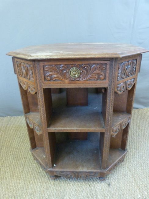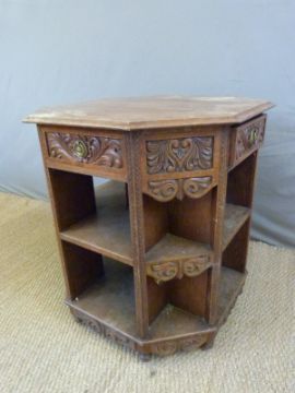 An oak carved revolving octagonal bookcase (W75 x H82cm)