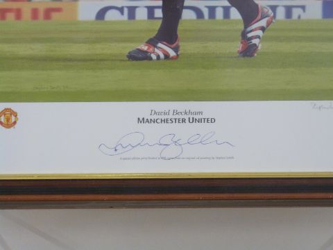 A signed David Beckham Manchester United print 5/500, 60 x 44cm