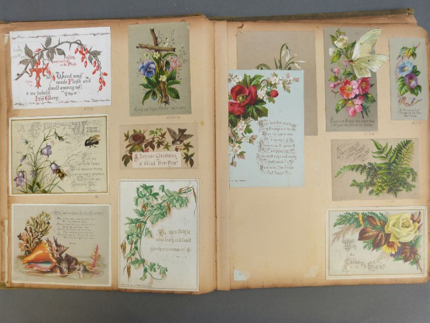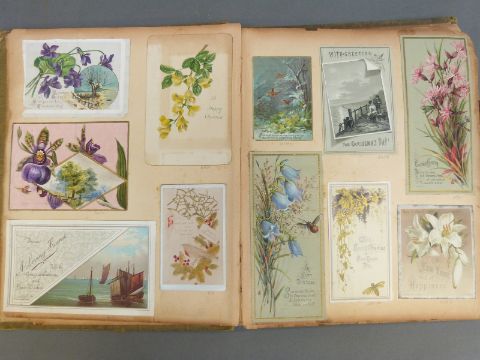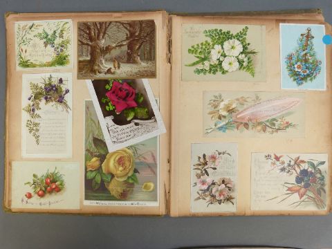 Two albums of postcards, greeting cards and scraps