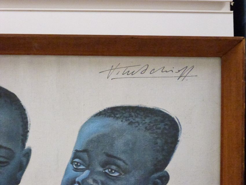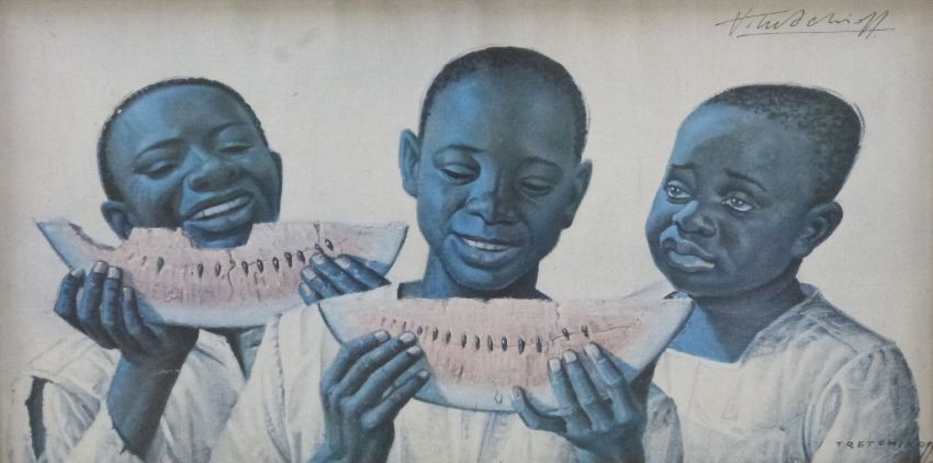 Tretchikoff signed print of three children eating melon, signed in pen top right 22 x 44cm