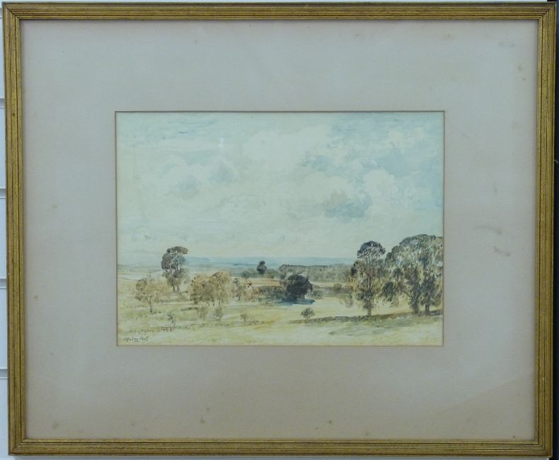 Alfred W Rich (1856-1921) watercolour 'Near Hurstpierpoint' (Sussex) signed lower left, label verso, approximately 25 x 35cm.