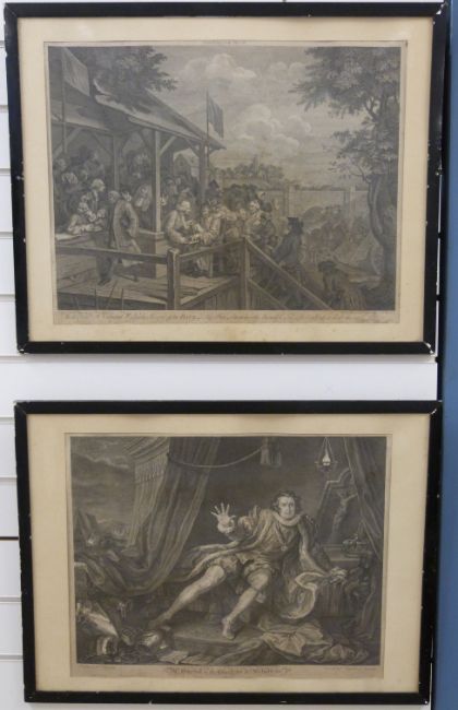 A pair of Hogarth engravings 'Mr S Garrick in Character of Richard 3' and 'The Polling' plate III, each approximately 43 x 55cm