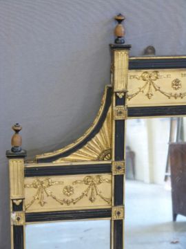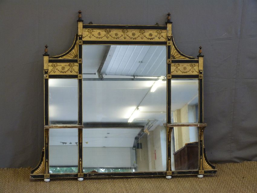 A Victorian neoclassical overmantel mirror of ebonised wood with gilt swag relief decoration, approximately 115 cm x 127 cm.