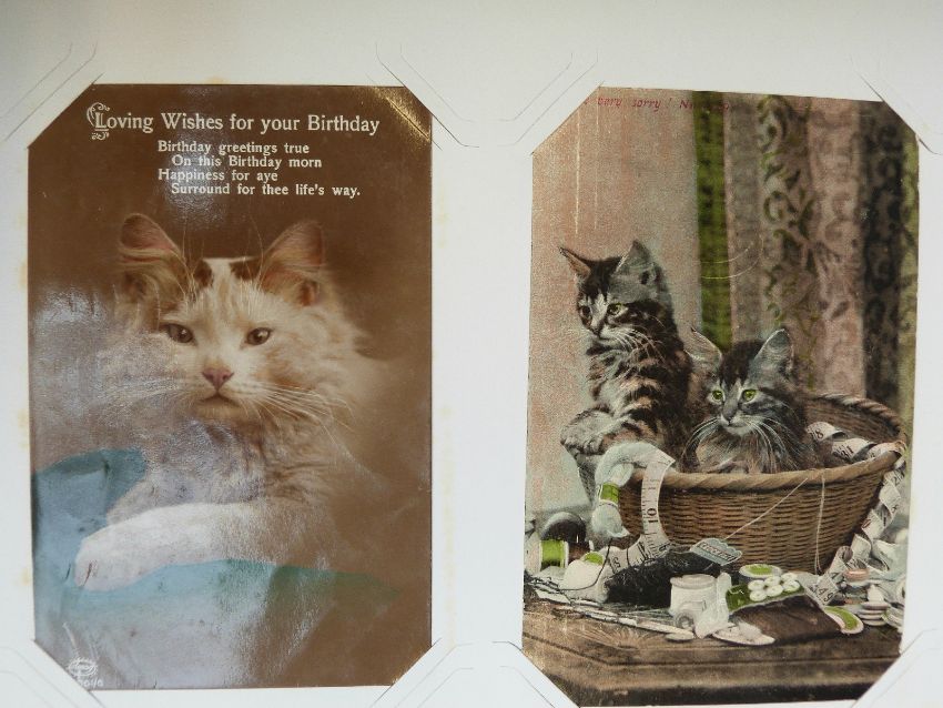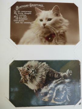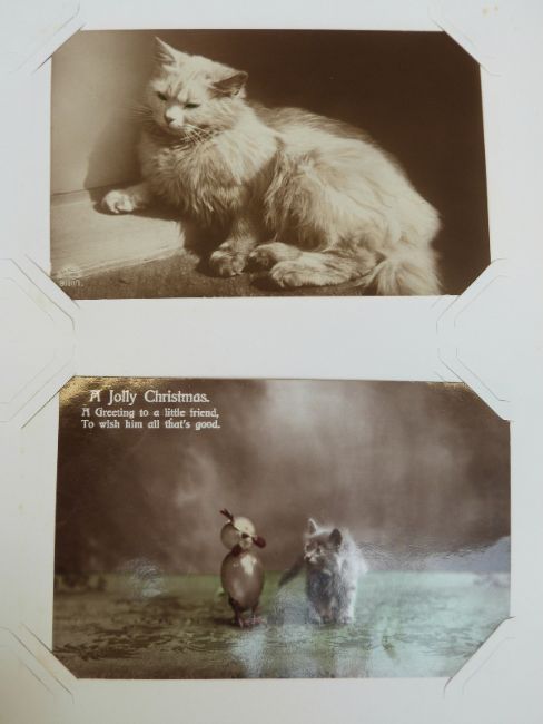 An album of early 20thC and later cat related postcards and a collection of novelty 3D cards.