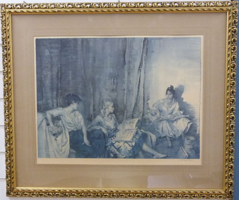 William Russell Flint (1880 -1969) signed monochrome print of three ladies, 46 x 60cm