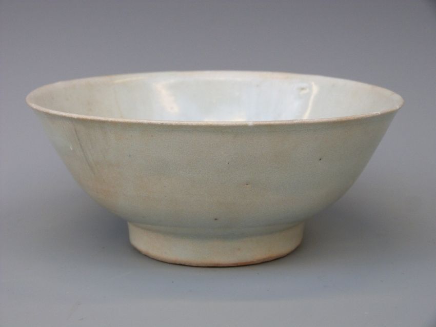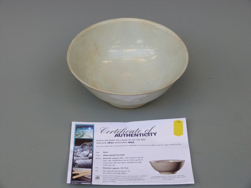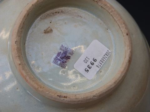 A Chinese pale celadon glazed porcelain footed bowl from the Tek Sing cargo wreck of 1822, with Nagel Auctions sticker to base, 16cm diameter