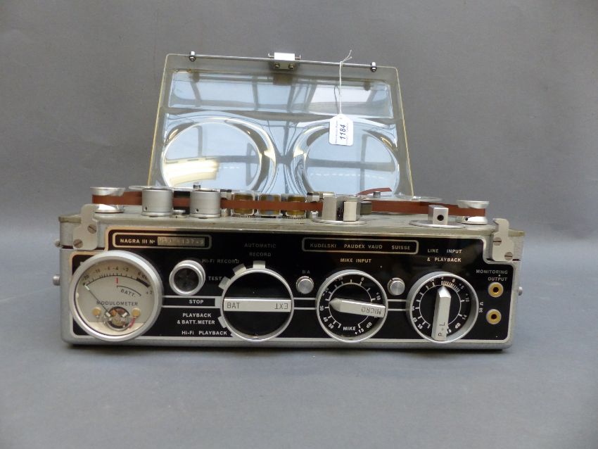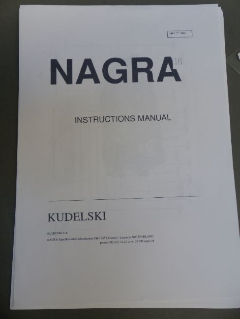 Kudelski Nagra III professional portable reel to reel audio recorder with a copy of the instruction manual, serial number PHO 6813749