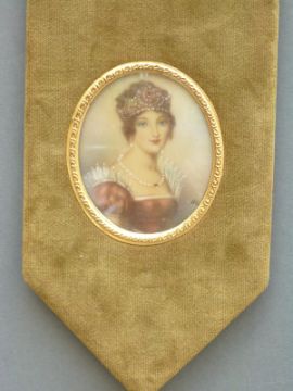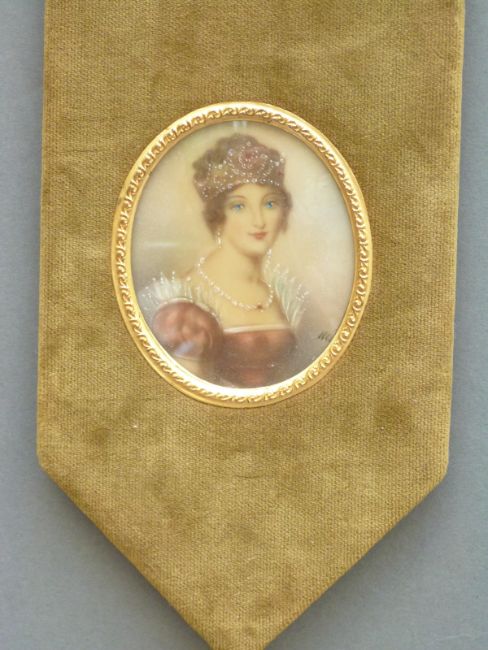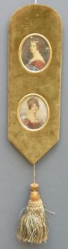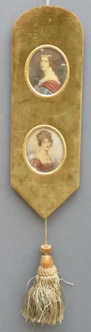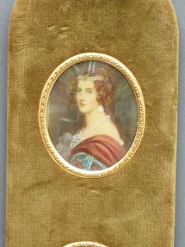 A framed pair of portrait miniatures of ladies, maximum diameter 6cm