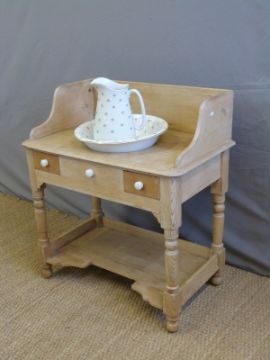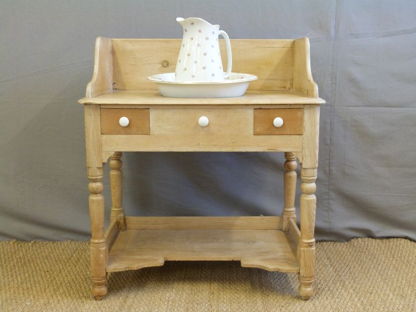 A vintage pine galleried back wash stand with jug and bowl (H94 x W83 x D48cm)