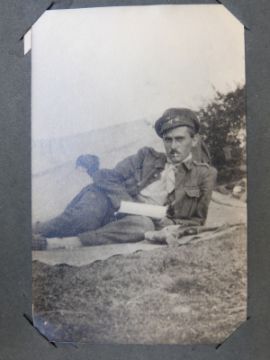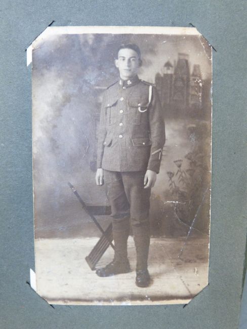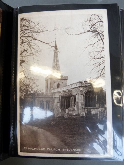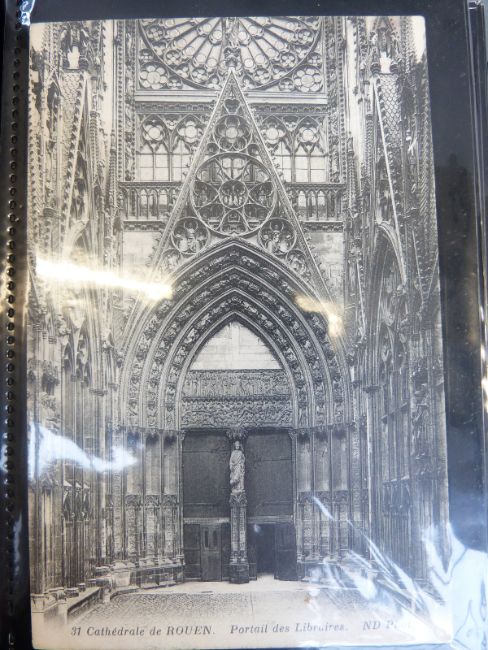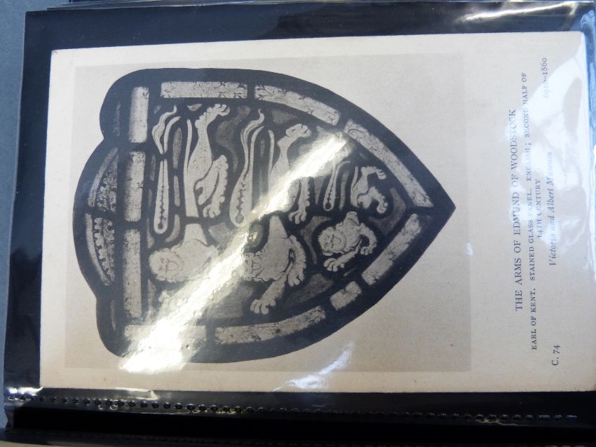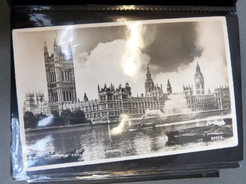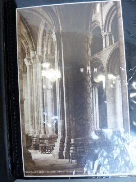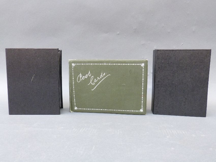 Two albums of black and white postcards of buildings including cathedrals & castles and an album of family and group portraits, mainly WWI related
