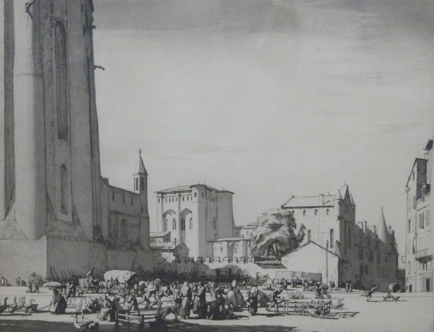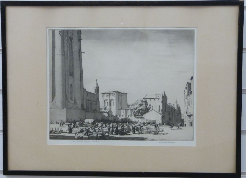 Malcolm Osborne signed engraving 'The Goose Fair, Albi', 28 x 36cm