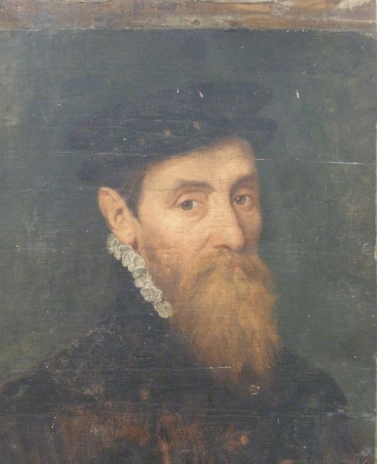 An 18thC or earlier oil on canvas portrait of a gentleman in Renaissance/Tudor costume, 43 x 38cm