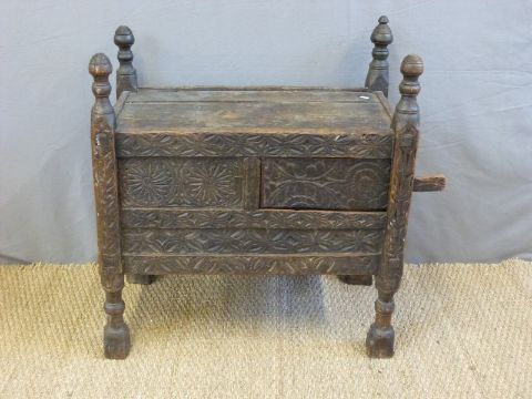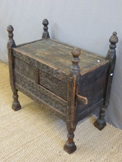 An 18thC/19thC Swat valley carved dowry or marriage chest with sliding doors (H79 x L74 x W43cm)