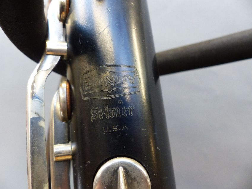 Selmer Bundy bass clarinet with sling, reeds, mouthpiece stand, and case, receipt enclosed for recent service