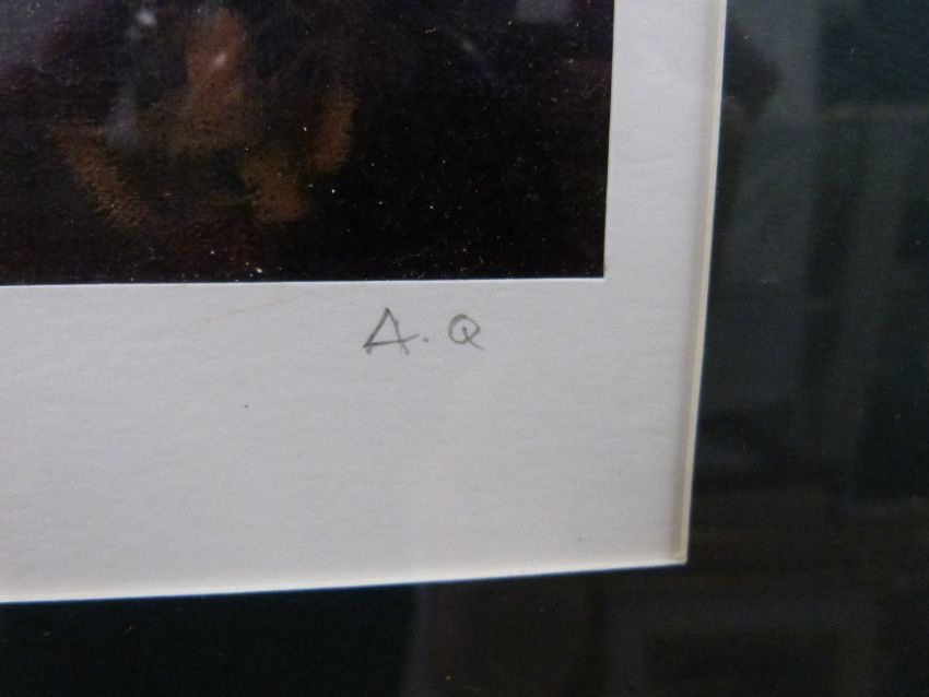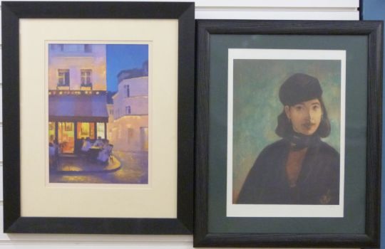 Andrew Quelch "Paris Cafe (Montmartre)" monogrammed lower right 34cm x 25cm together with "Chinese Lady (after Monet)" by the same artist.