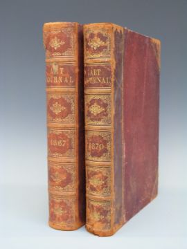 The Art Journal for 1867 and 1870 with plates, both volumes half red leather gilt decorated spines with raised bands together with volume 2 of The Works of John Locke, 5th edition London 1751 (3)