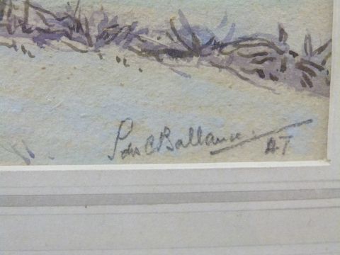 Pen, wash and gouache on paper winter scene with snow on a hilly landscape, indistinctly signed lower right, 34 x 44cm