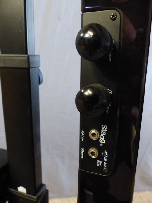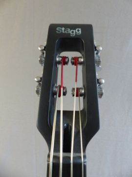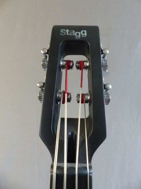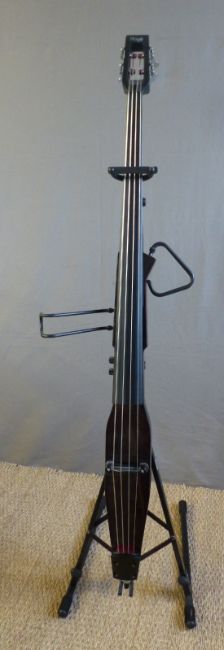 Stagg electric double bass ¾ size, model No HDB-200, in dark brown lacquered finish, together with supports, soft case and stand