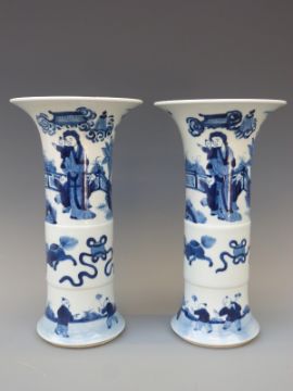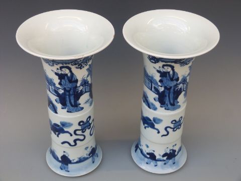 A pair of Chinese blue and white vases with four character marks to base, four character mark to base, 25.5cm tall