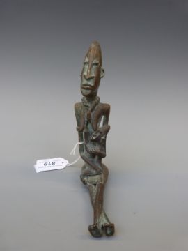 An African bronze/brass figure of a seated mother and child, height 17cm