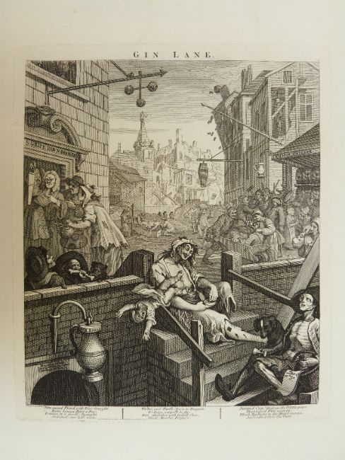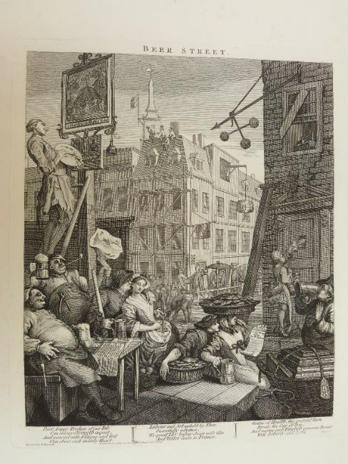 Two Hogarth engravings Beer Street and Gin Lane, 66 x 49cm