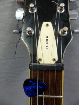 Hohner Rockwood LX250G Les Paul type replica electric rhythm guitar, in dark wood grain finish, with soft case.