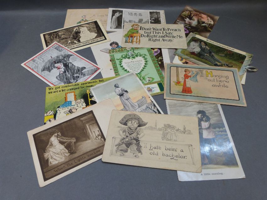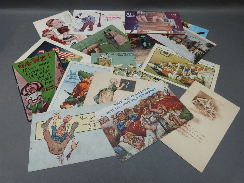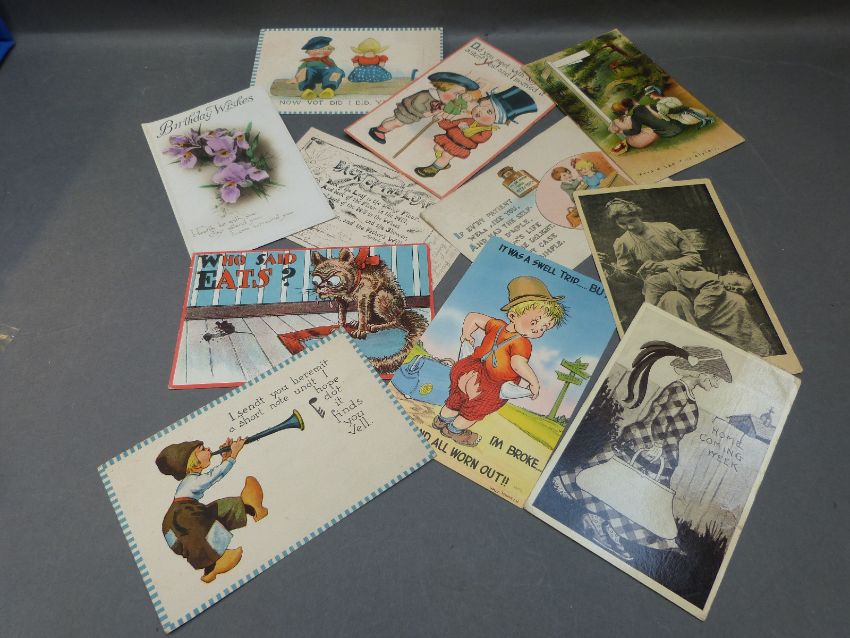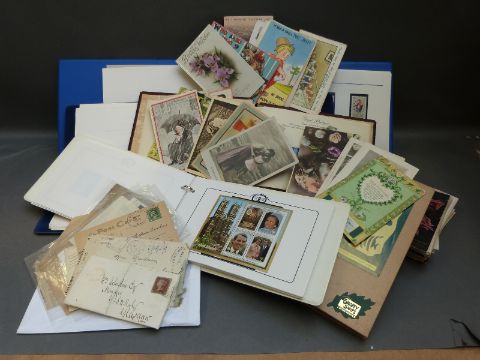 Victory and other omnibus stamp albums together with early humorous postcards, early covers etc