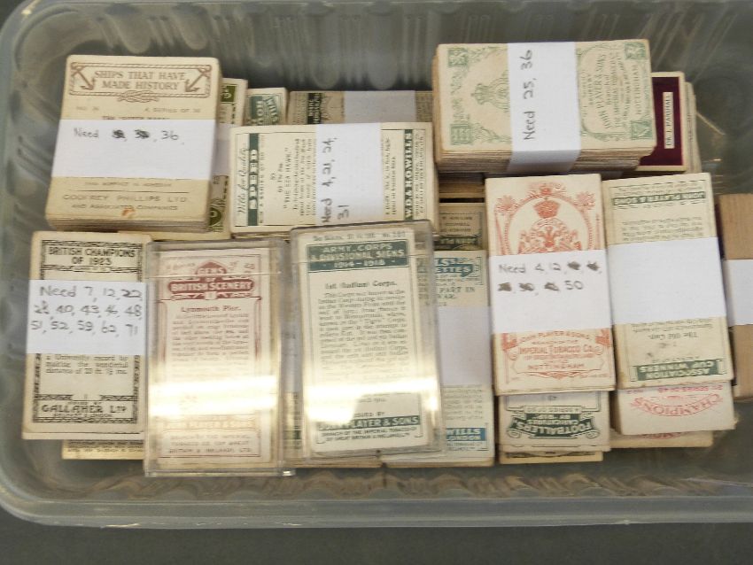 Approximately 70 full sets of cigarette cards, including football, cricket and horse racing churchman Queen Mary, Ogdens motor races 1931 mainly 1920 and 30s together with earlier part sets including Cope Bros boxers, Thomson footballers etc