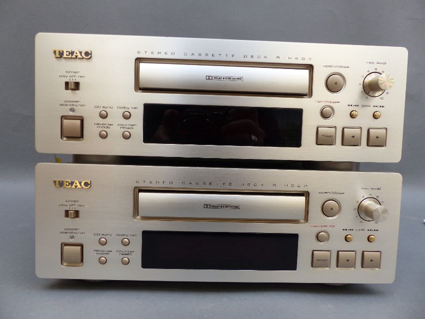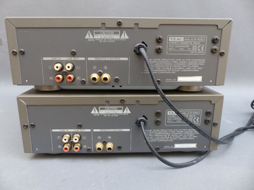 Two TEAC R-H500 stereo cassette decks with original owners manual, serial numbers AOEIC0106 and AOBIC0021