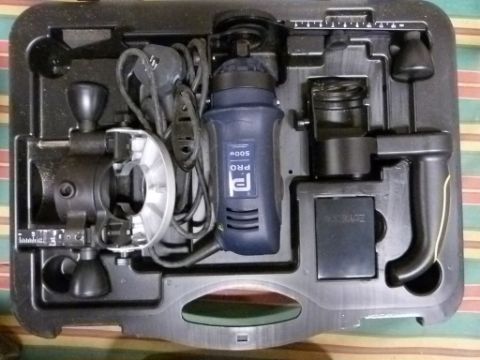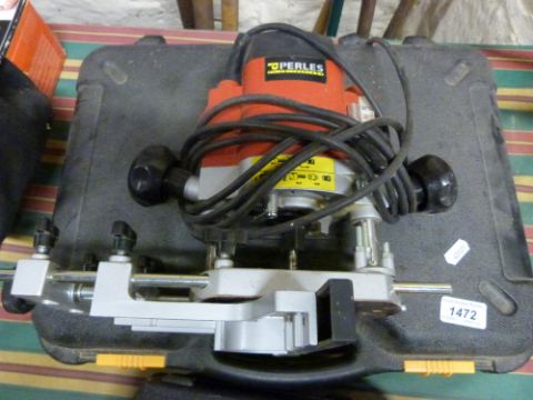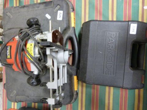 A Perles router, cased smaller router and a cased Parkside Dremel type tool.