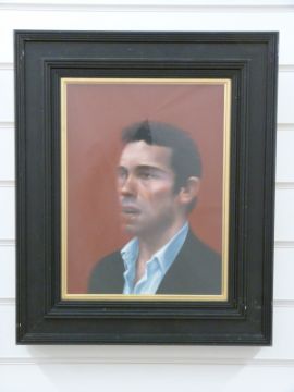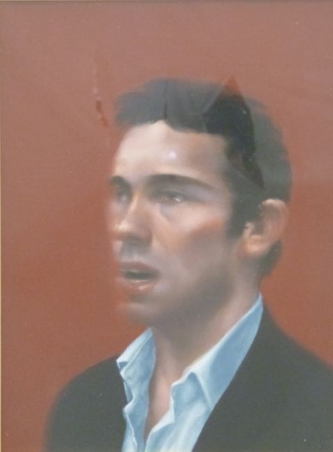 Graeme Wilcox (b.1967) acrylic on canvas 'Blurry Head' head and shoulder bust of a man with open necked shirt, titled and signed verso 35 x 27cm