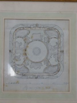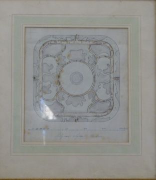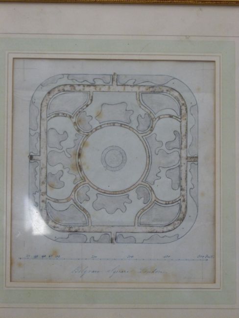 A framed design for Belgrave Square, London, with details verso, dated June 1959, 20 x 18cm